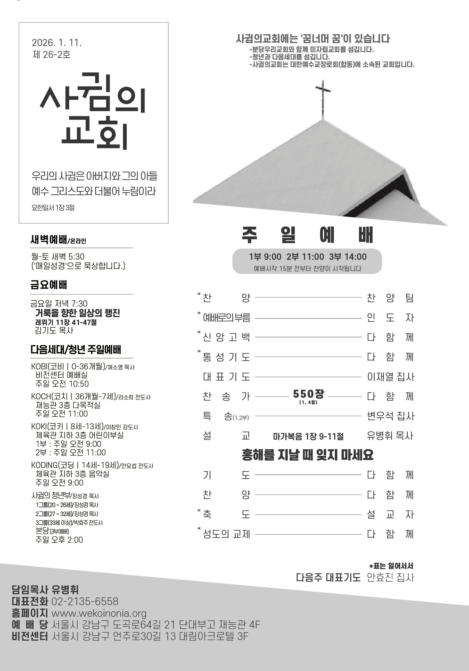 예배시간 안내
